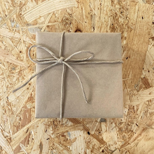 クラフト紙に、紙紐(茶色)をかけたラッピングです。