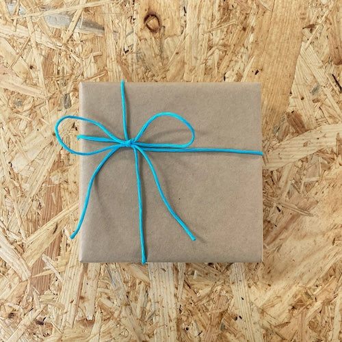 クラフト紙に、紙紐(水色)をかけたラッピングです。