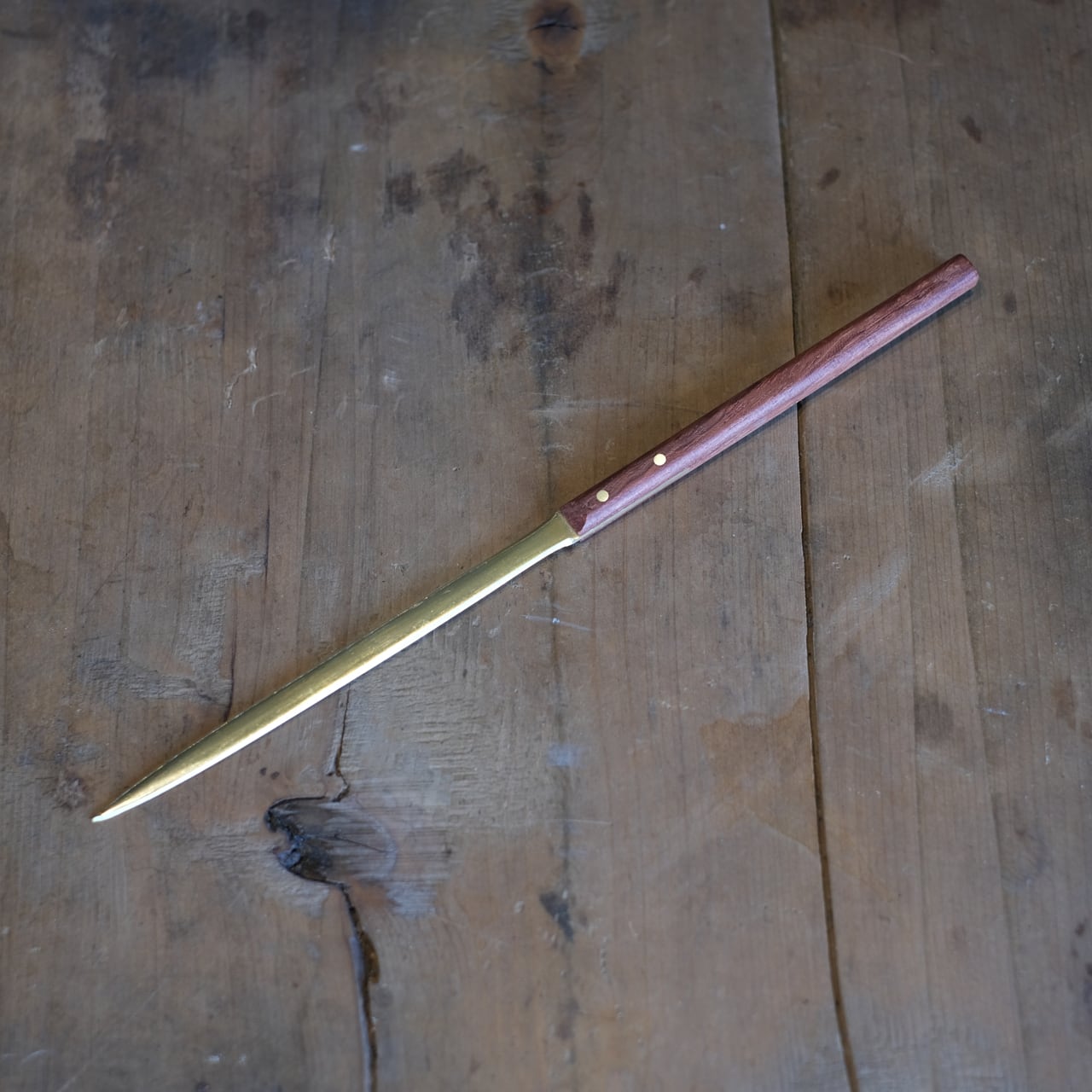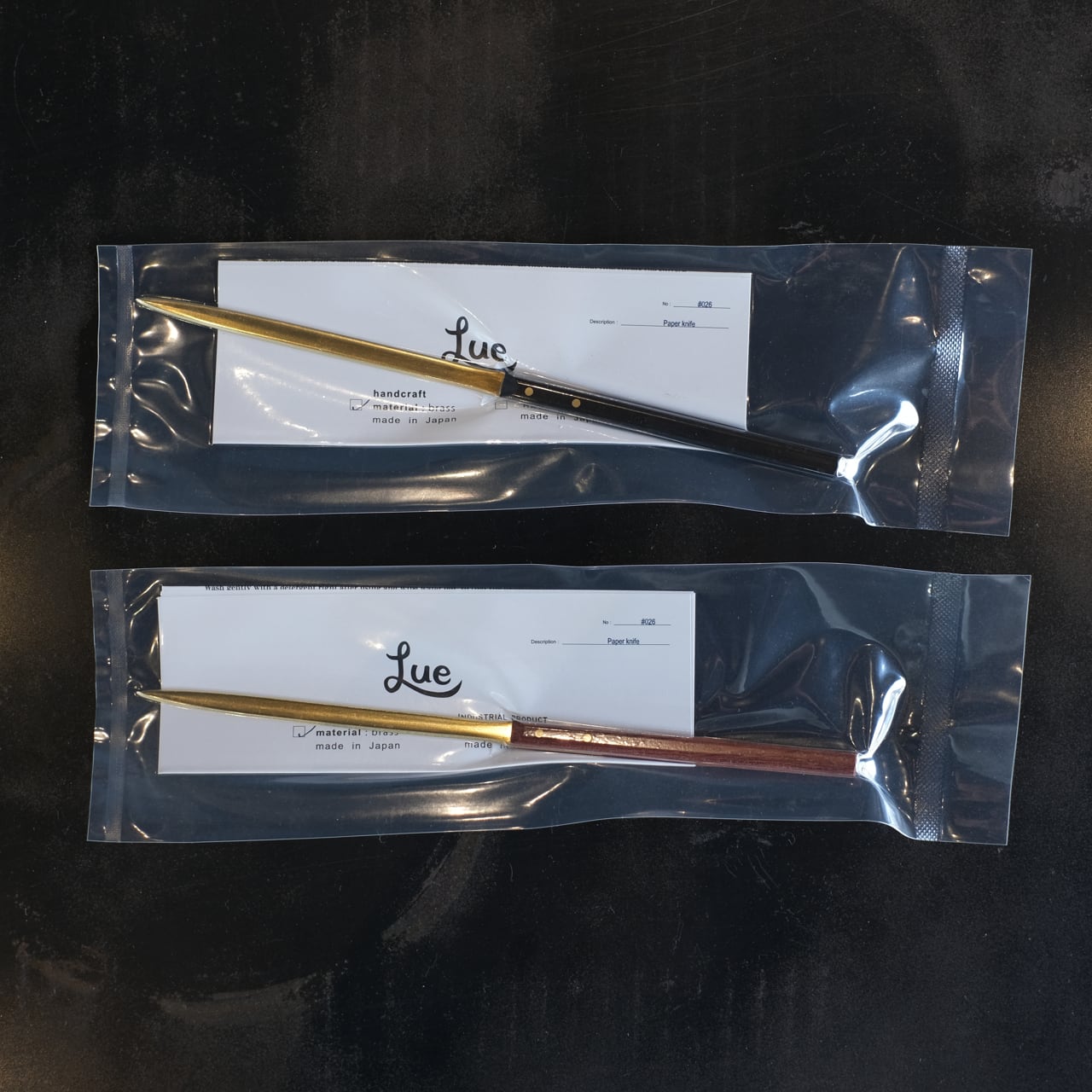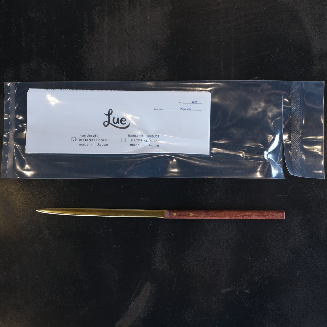 岡山県瀬戸内市を拠点として、真鍮製を中心としたハンドクラフトのカトラリー・雑貨・アクセサリーを作っているLueの真鍮製のペーパーナイフ。