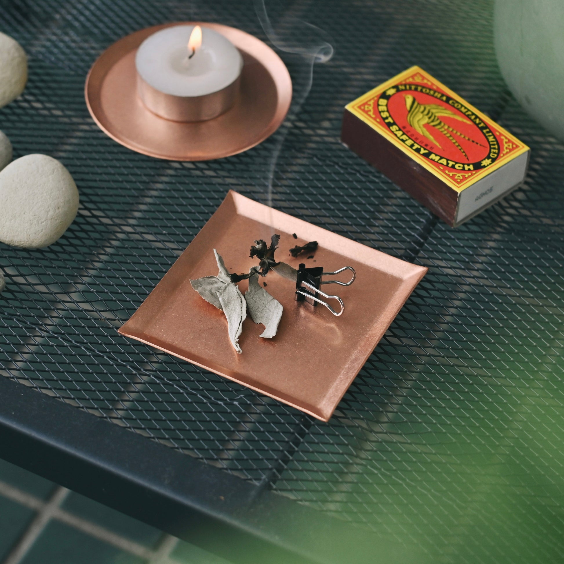 これ以上無いシンプルなフォルムと使いやすいサイズはお香立てを受ける香皿や、パロサントやホワイトセージを焚くトレイやアクセサリートレイ等、ユーザー様の工夫次第で様々な用途にご使用いただけます。