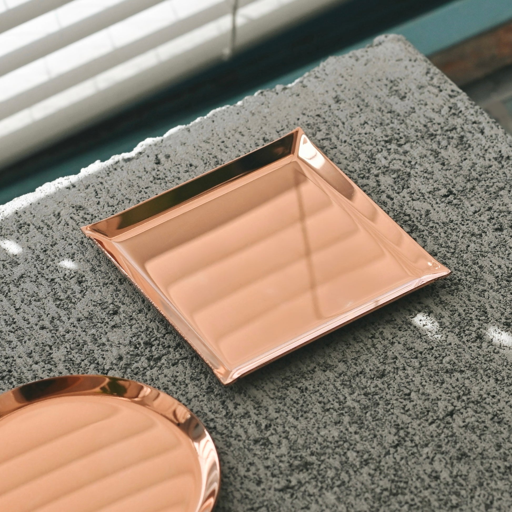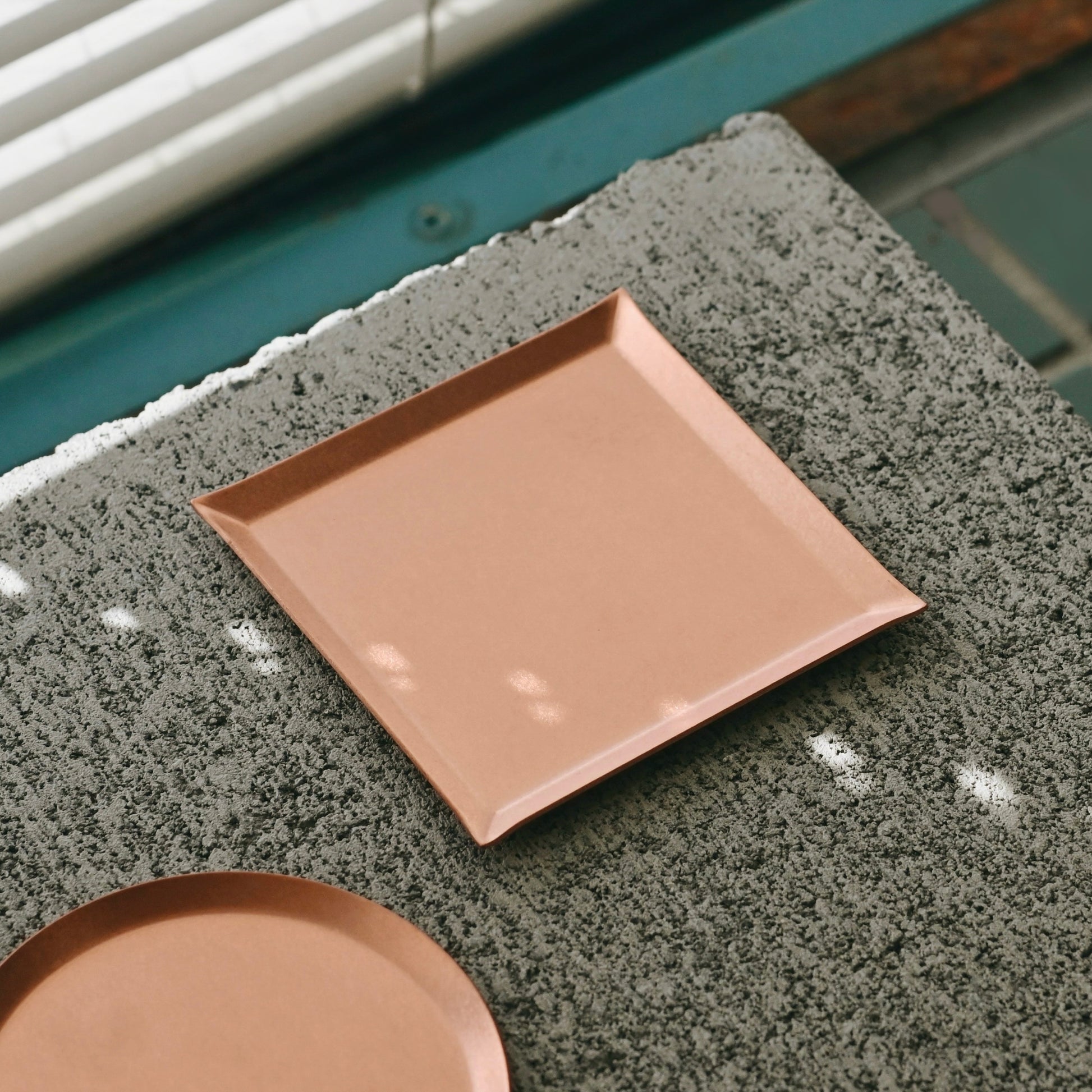 1.0mmと厚めの銅板をプレス加工にて成形したしっかり感のあるトレイです。