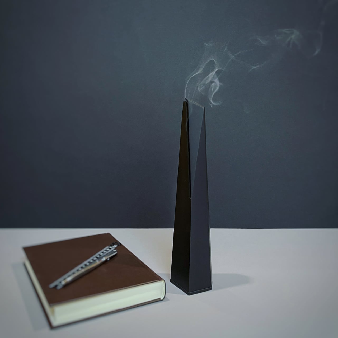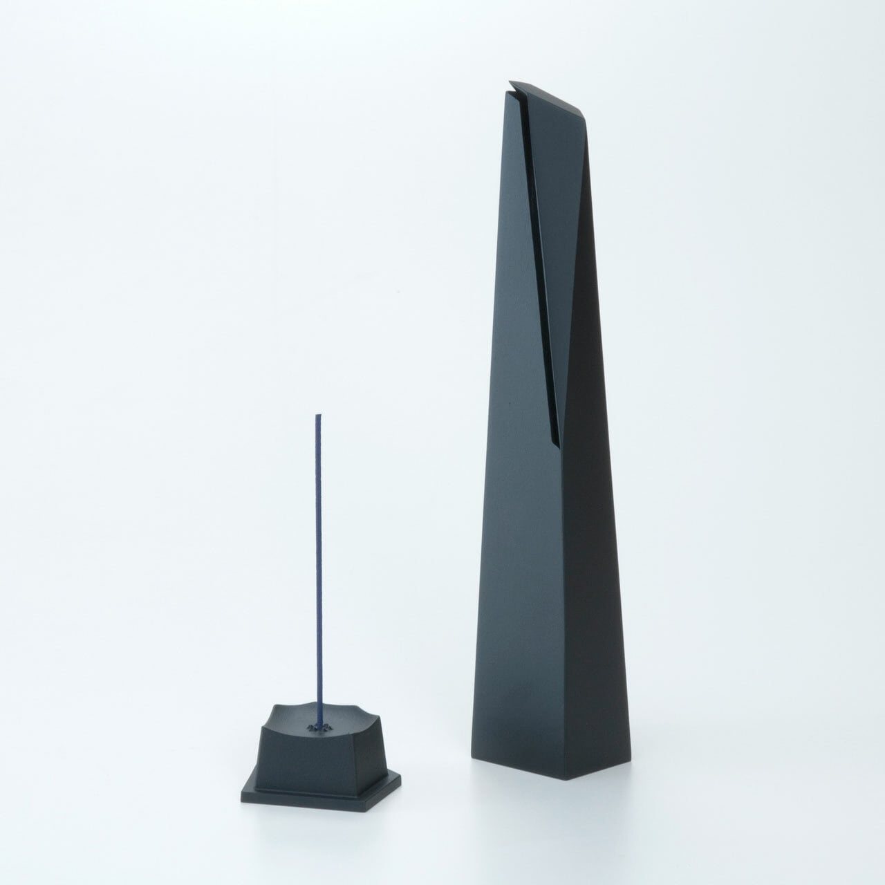 直線の組合せによる都会的で静的なフォルムと、スリットから漏れる香煙の動が特徴の香炉です。
