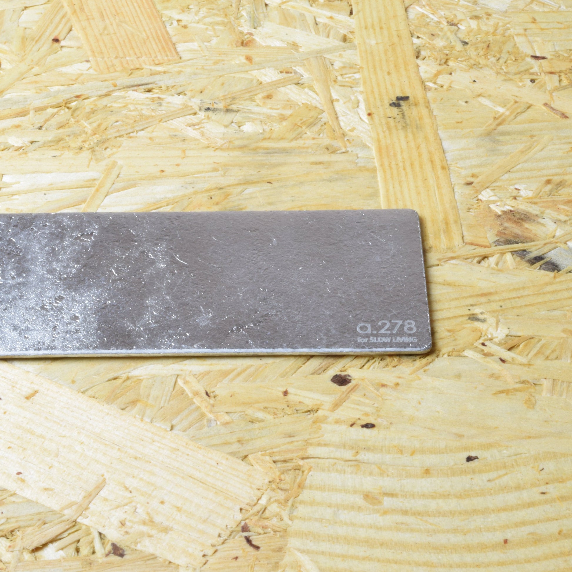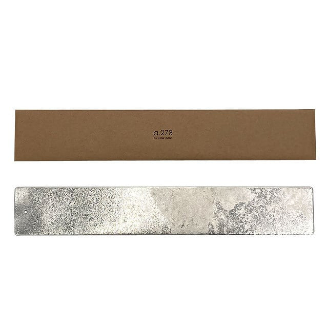 、本製品は金属伝統工芸の街、富山県高岡市の老舗鋳造メーカーで鋳造しています。 鋳造とは溶けた金属を鋳型に流し込んで固める製法です。 通常は表面を研磨し、着色したり仕上げることが多いです。ですが、a.278では溶けた金属が流れて固まった時の模様(湯流れと言った)の風合いを活かすため、その仕上がりを行っていません。その為、一つ一つが違う模様につきます。この