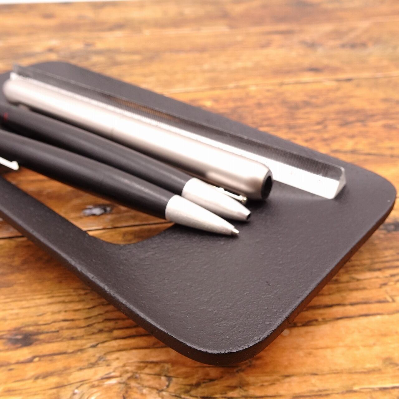 中央の長方形の穴は、ペンを取る際に取りやすいデザインとなっており、伝統と機能を兼ね備えています。