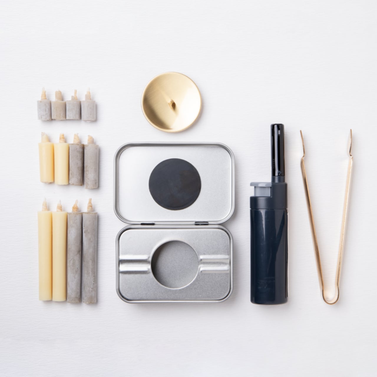 《ロウソク瞑想にフォーカスした和ろうそくセット》おうち時間の癒しに 和ろうそくを楽しむ7点セット(ろうそく、燭台、ライター、芯切り、芯入れ付き)| 京ROUSOKU+