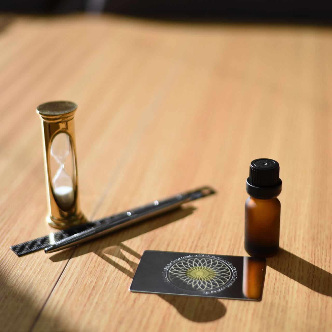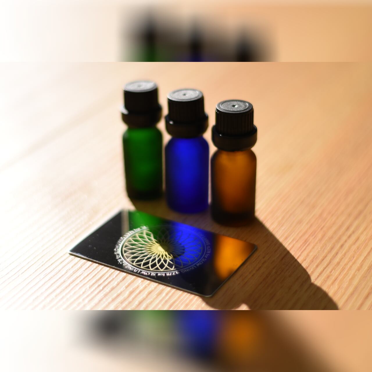 幾何学模様のアロマ皿は、素材に刻んだ模様に沿って精油が広がる芳香成分の拡散を補助する、携帯できる便利なカード型アロマ皿です。