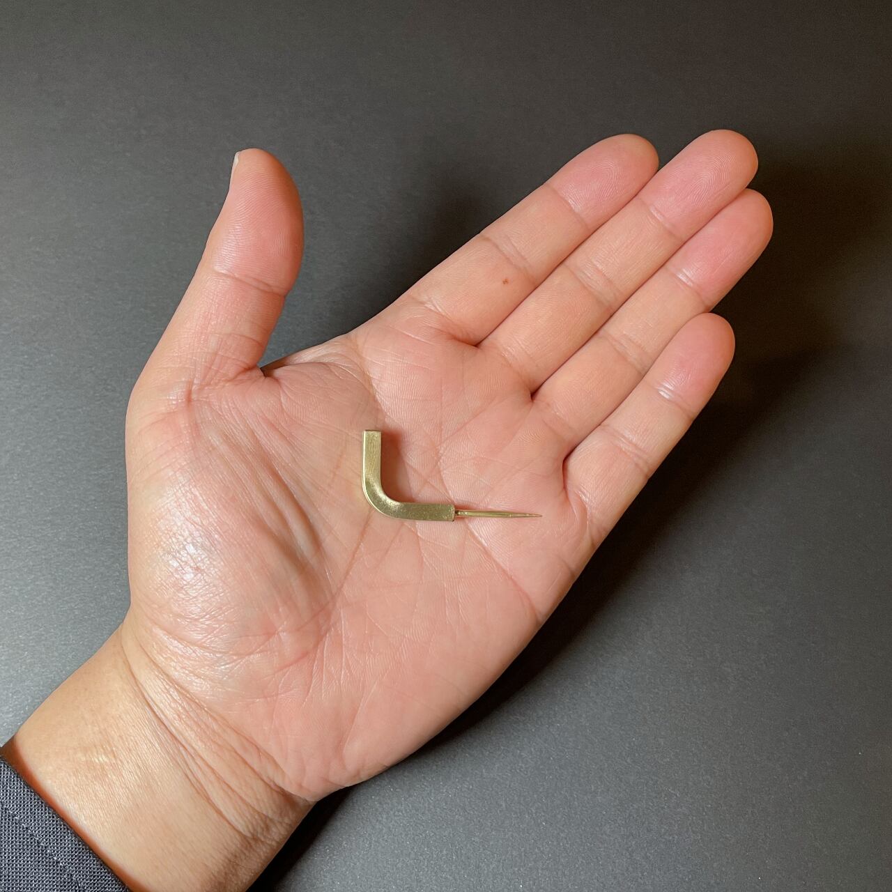 また、ピン部も真鍮であり曲がり易くなっています、壁に真直ぐに突き立てて押し付けながらグリグリと左右に反復させていくと刺しやすいです。