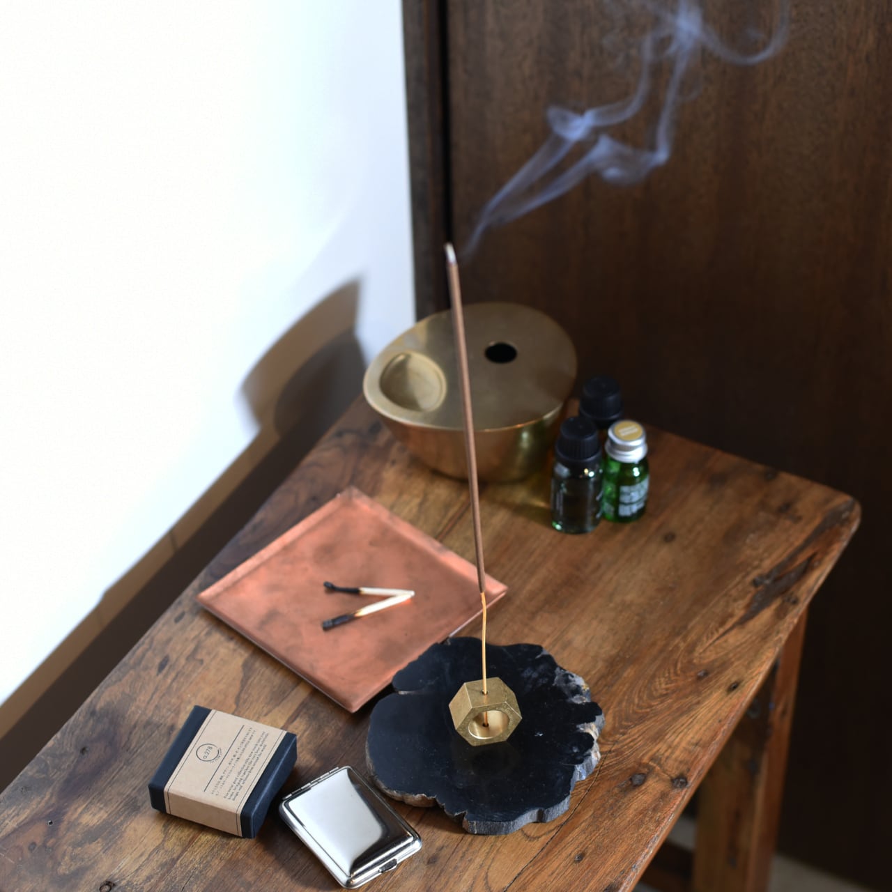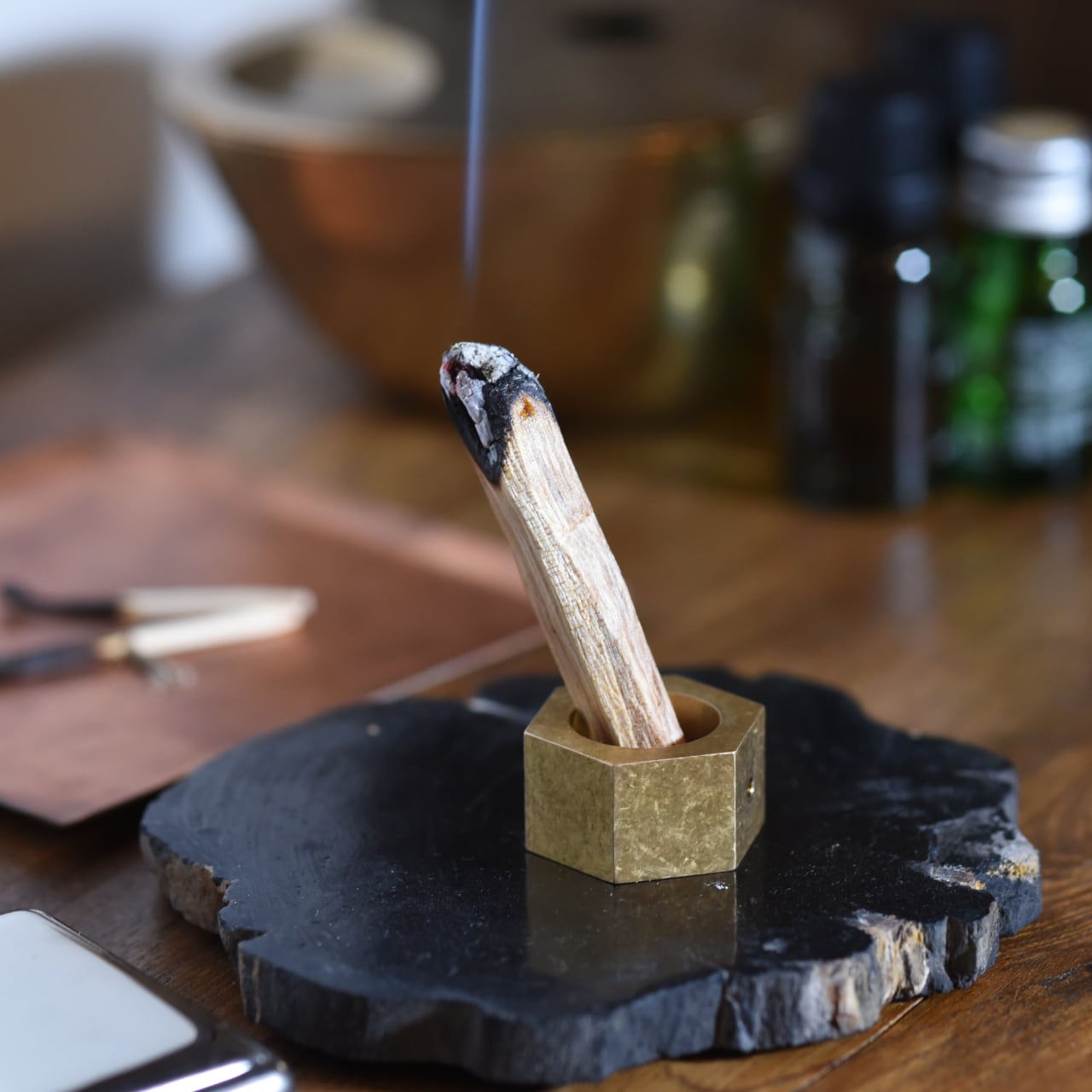 少々無骨なスタイルですが、しっかりと重量感もありパロサントや、バンブーインセンスを立てても倒れることはございません。掲載の写真の様に様々なシーンにご活用いただけます。