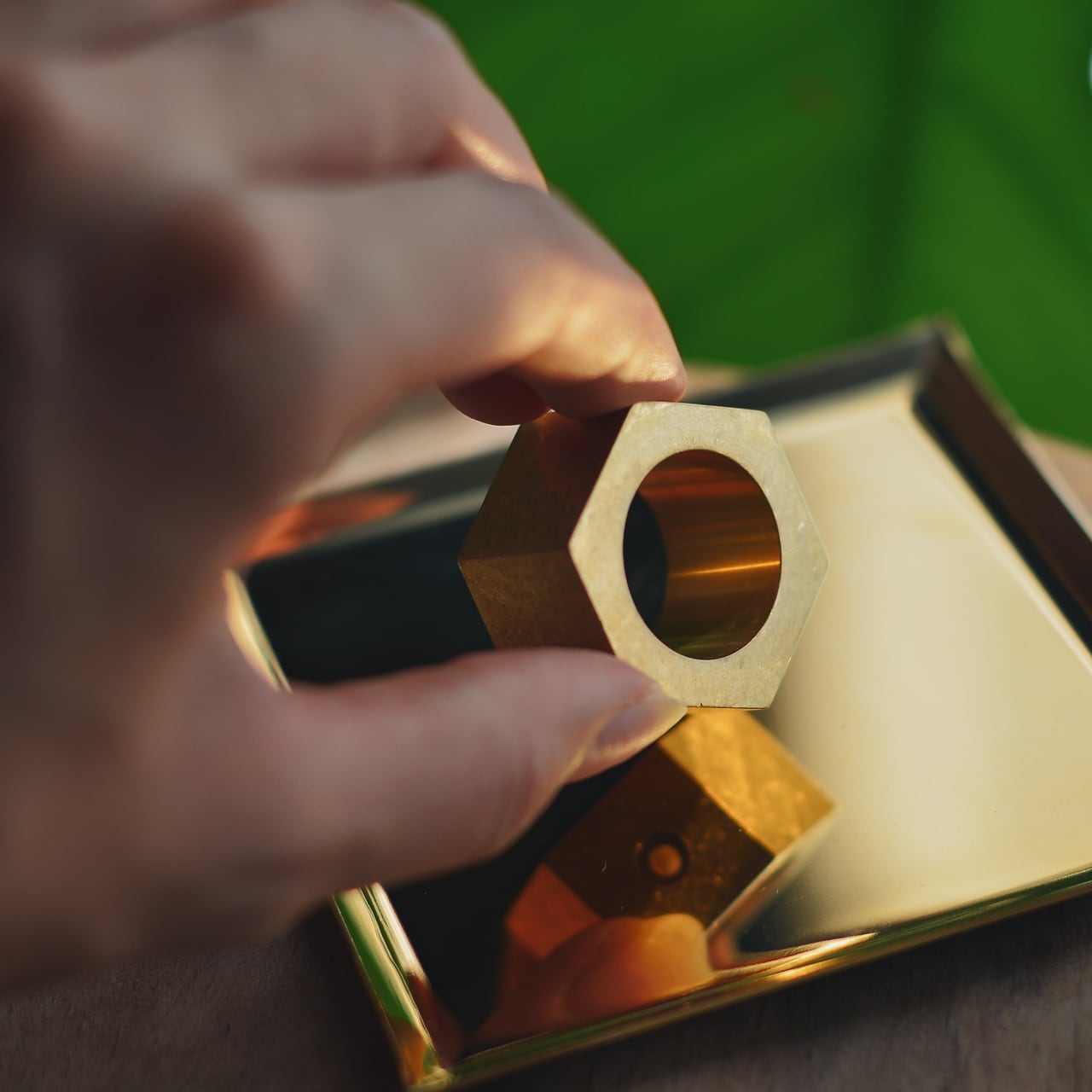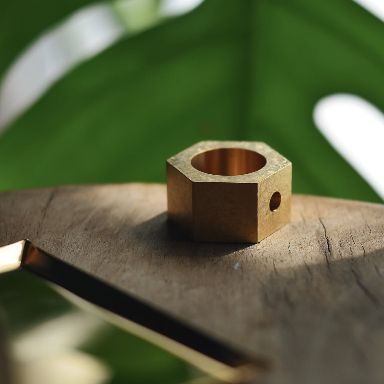 素材は真鍮。無垢材から切削加工の削り出しです。