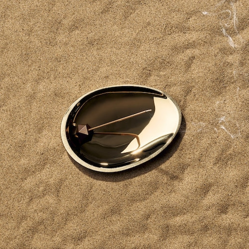 アバロンシェル(アワビ貝の一種)をモチーフにした真鍮鋳物のマルチトレイです。アバロンシェルは古来よりネイティブアメリカンによって神聖なものとされ、海に由来することから、海からの癒しを与えてくれるものとして儀式の際などに使用されてきました。表面は職人による鏡面磨きで、裏面は砂型鋳物の粗々しい鋳肌をそのまま残すことで、アバロンシェルの質感を表現しています。真鍮は、時間の経過とともに色合いが変化するため、仕上げによって異なる経年変化お愉しみいただけます。(経年変化をお愉しみいただくため、表面にはクリアコーティングを施していません。)
