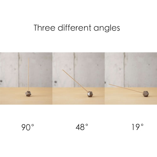 ポリインセンスホルダーは、ブロンズの精密鋳造でつくられた正二十面体の香立です。 ブロンズは時間の経過とともに色合いや表情が変化する素材です。 長くお使いいただける中で、経年変化をお愉しみいただくため、表面にはコーティングを施しておりません。 穴は大小2種あいており、3種の角度でご使用いただけます。