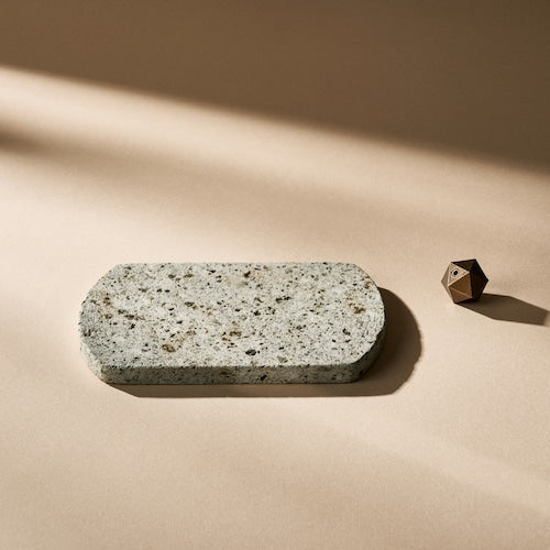 大谷香Plate(オオヤインセンスプレート)は、大谷石の風合いと、特性を相談したマルチに使える香皿です。 大谷石は、栃木県の大谷地区でのみ産出される凝灰岩(ぎょうかいがん:火山灰が地中や海中に積もり長い)年月を経てできた岩石)で、耐火性・耐熱性に優れ、1000度以上の熱に耐えることから、かまど、七輪、石窯、焼却炉にも使われている材料です。 一点一点表情が違い、大谷石の独特な風合いも魅力のひとつです。