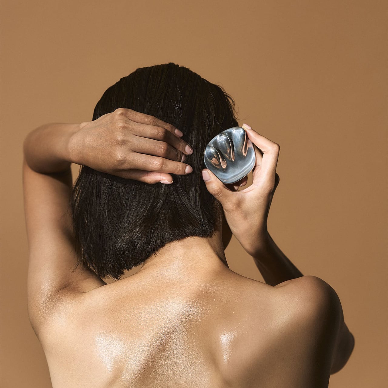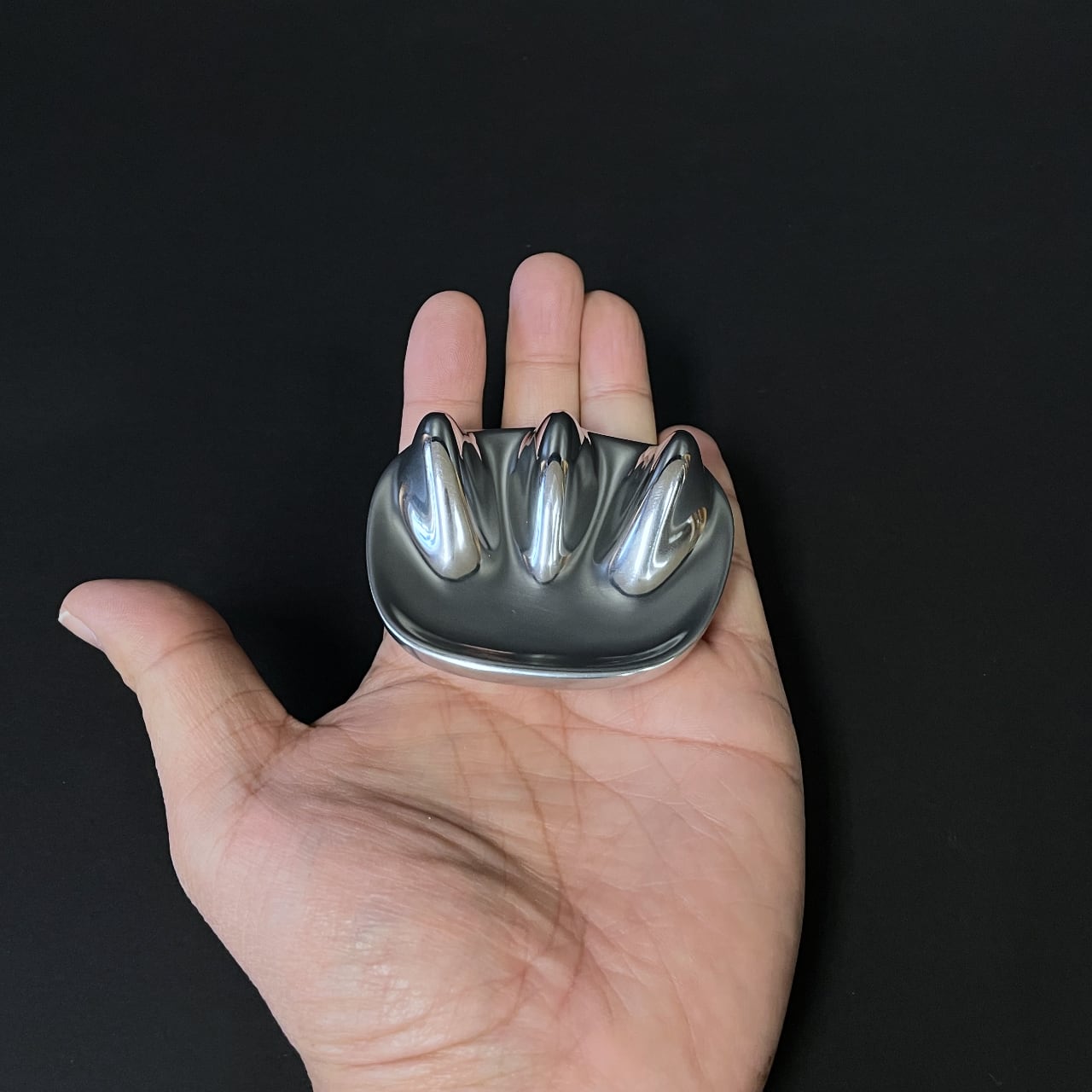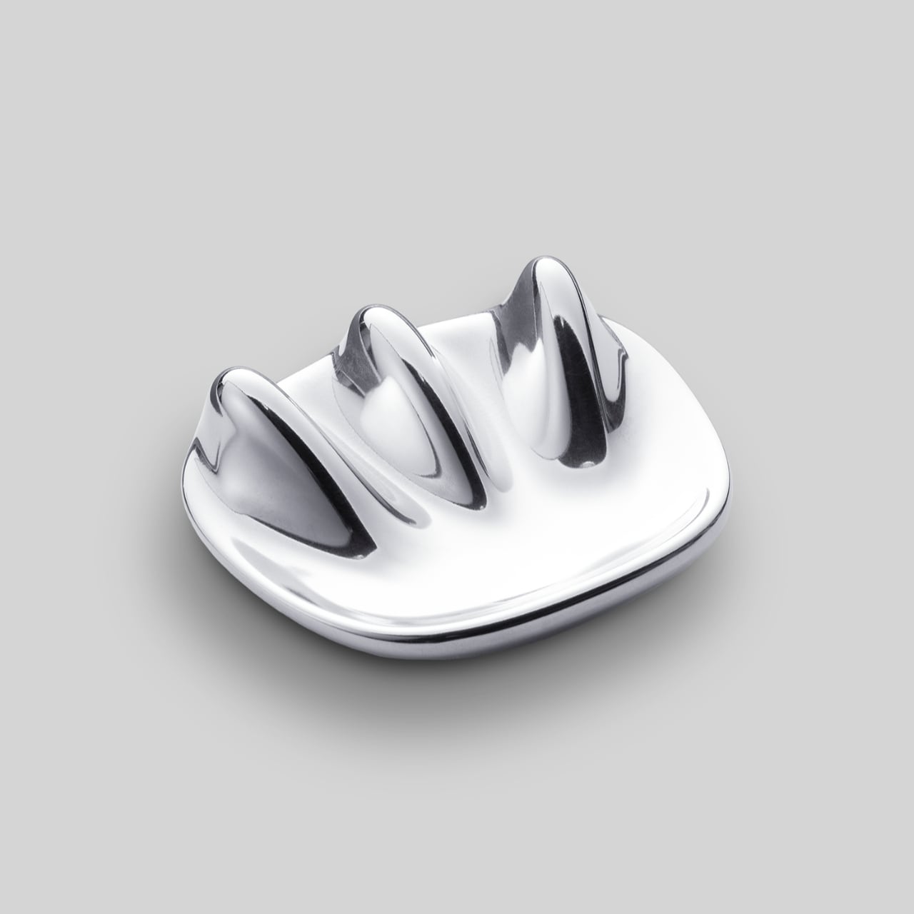 耐食性の高い種類のアルミ製で、オイルを使ったり、お風呂でバスタブにつかりながらご使用になれます。鏡面に磨き上げられた3つの突起を持つフォルムは、滑らせるような優しい押し当てと、指圧のような強い押し当ての両方が可能です。この特徴的なフォルムは全身へのアプローチにも適しており、脂肪への刺激などにもお使いいただけます。