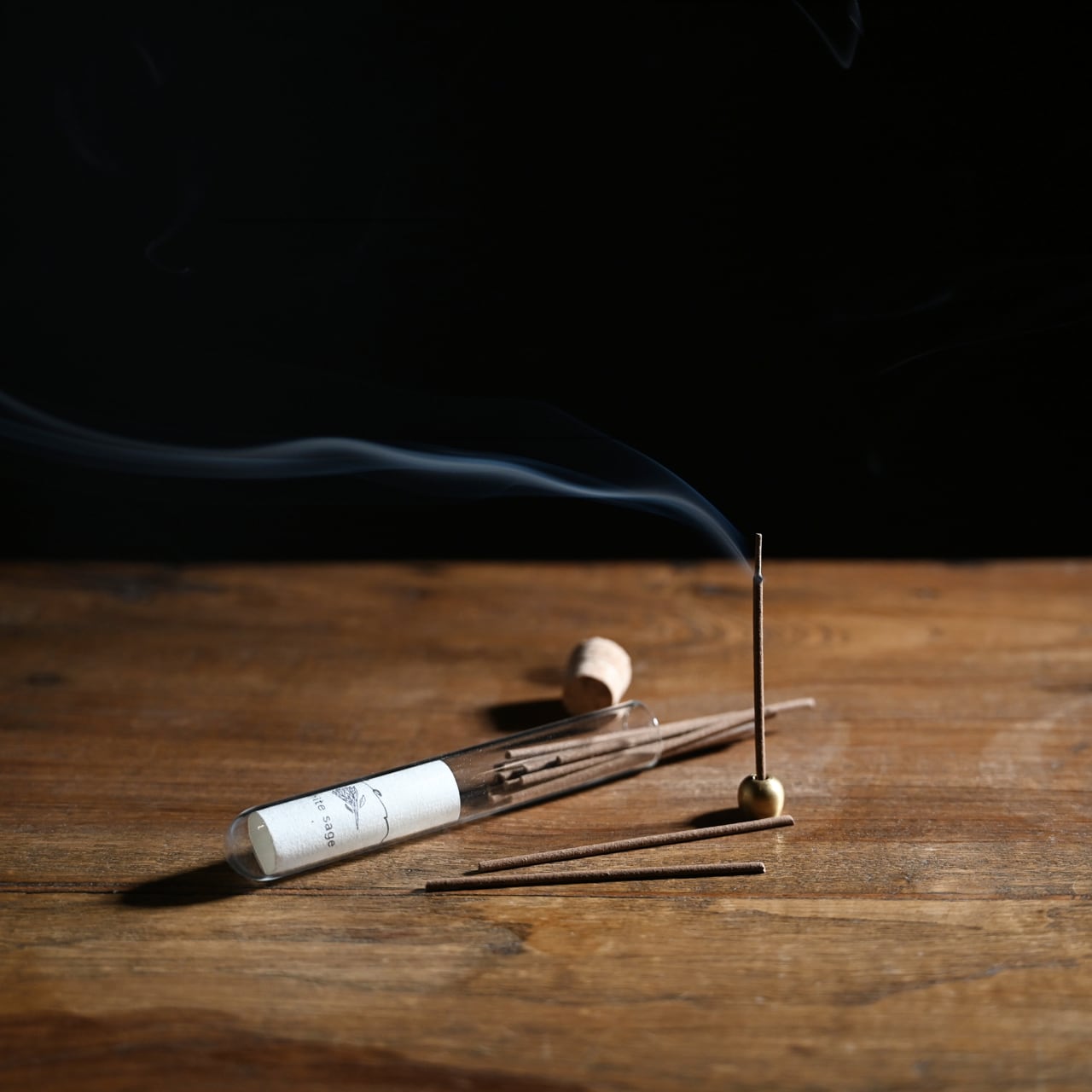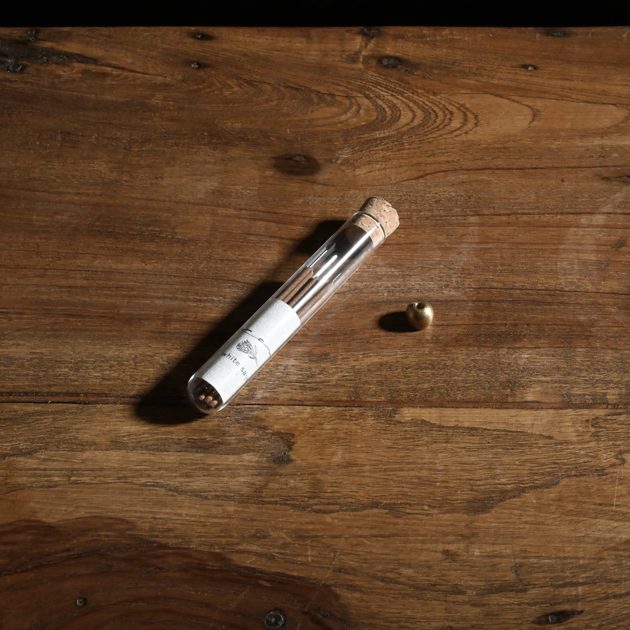 セット内容:ホワイトセージのお香20本(試験管入り)+小さな真鍮の香立て
