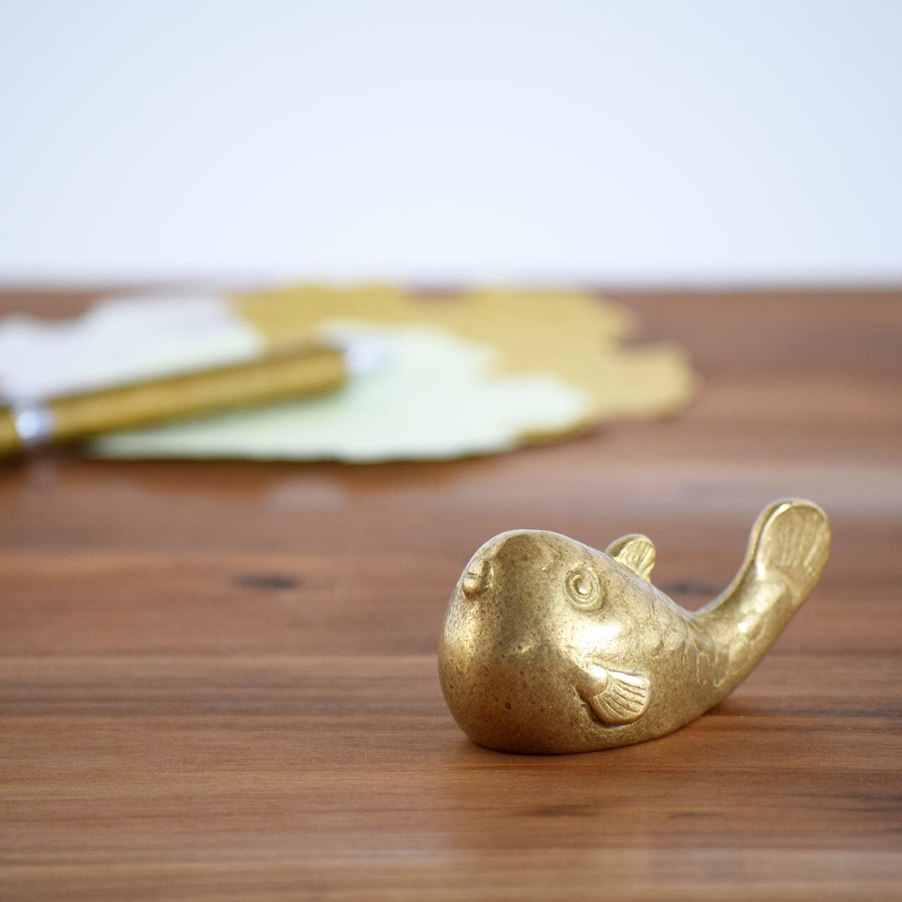 縁起物として扱われることもある”ふぐ”の真鍮鋳物製ペーパーウェイト&筆置きです。